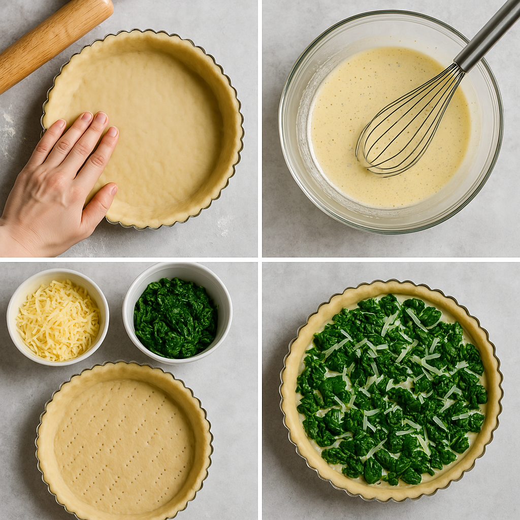 Crust: Quiche starts with a buttery pie crust. You can use store-bought crust or make your own from scratch.